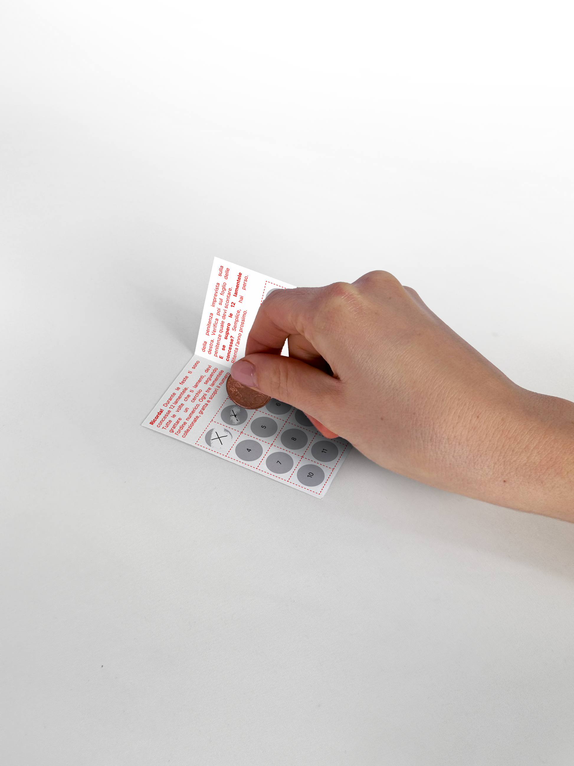 - Materiale: 100% carta, con alcune aree ricoperte da un rivestimento argentato grattabile. Anche la confezione è interamente realizzata in carta.